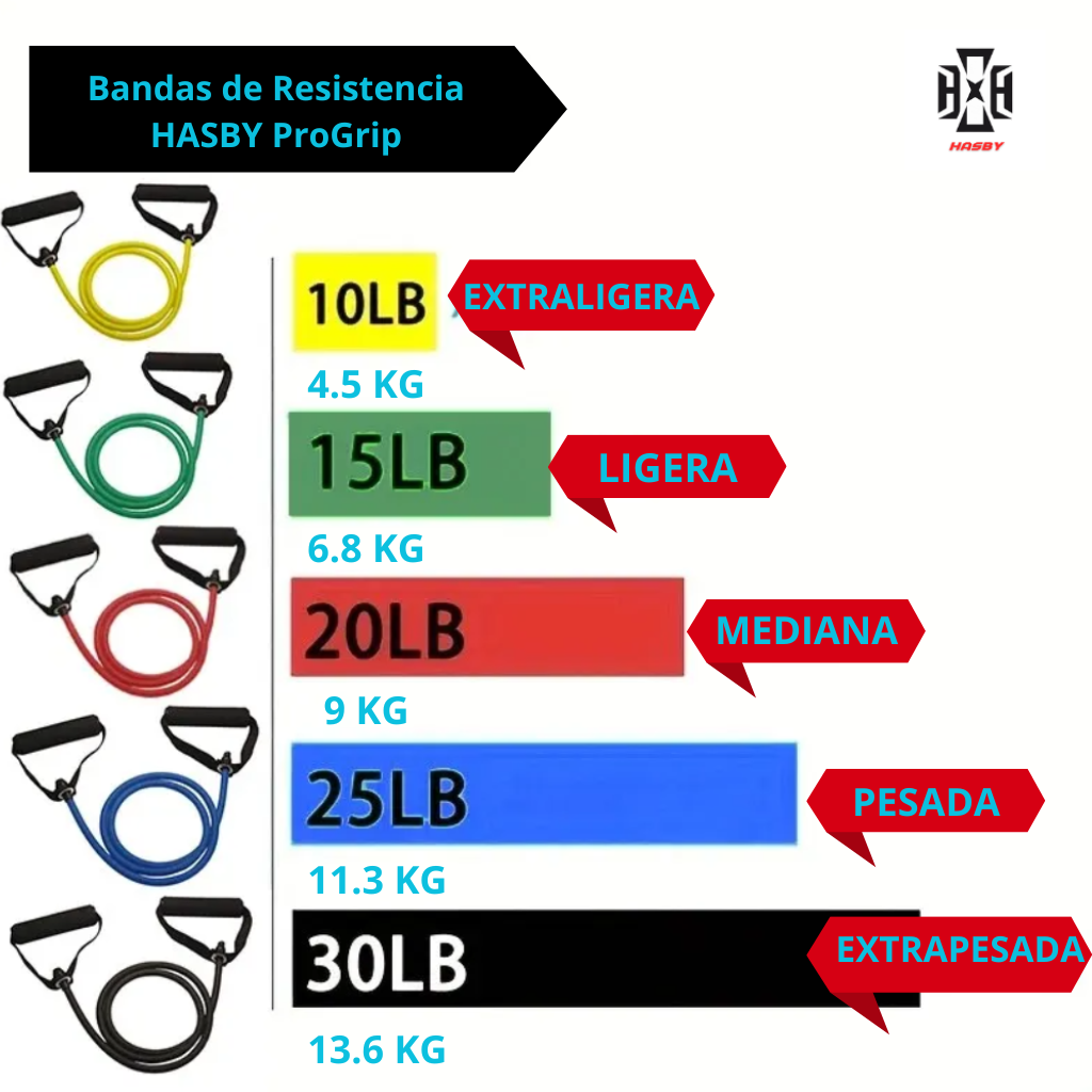 Las Bandas de Resistencia HASBY ProGrip están fabricadas con materiales de alta calidad que garantizan durabilidad y resistencia. Su diseño ergonómico con tecnología ProGrip te brinda un agarre seguro y cómodo durante cada ejercicio, evitando resbalones y asegurando una experiencia de entrenamiento segura y efectiva. ¡Dale a tus entrenamientos la calidad que se merecen con estas bandas de resistencia premium!