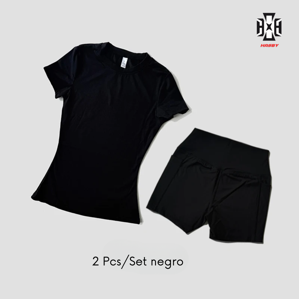 Este conjunto deportivo está confeccionado con materiales de alta calidad que garantizan durabilidad y resistencia. La tela transpirable te mantendrá fresco durante tus rutinas de ejercicios, mientras que el diseño ergonómico se adapta a la forma de tu cuerpo para brindarte el soporte necesario en cada movimiento. Ya sea que practiques yoga, corras o vayas al gimnasio, el Conjunto Deportivo Hasby será tu compañero perfecto.